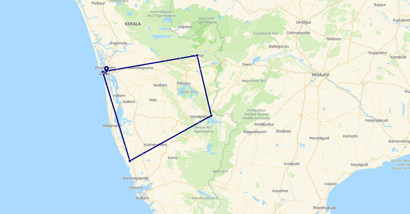 The tour concludes with a drive back to Cochin, where you can explore the city before departure. This well-balanced itinerary offers a perfect mix of hill stations, wildlife, and backwaters—an ideal escape into "God’s Own Country."